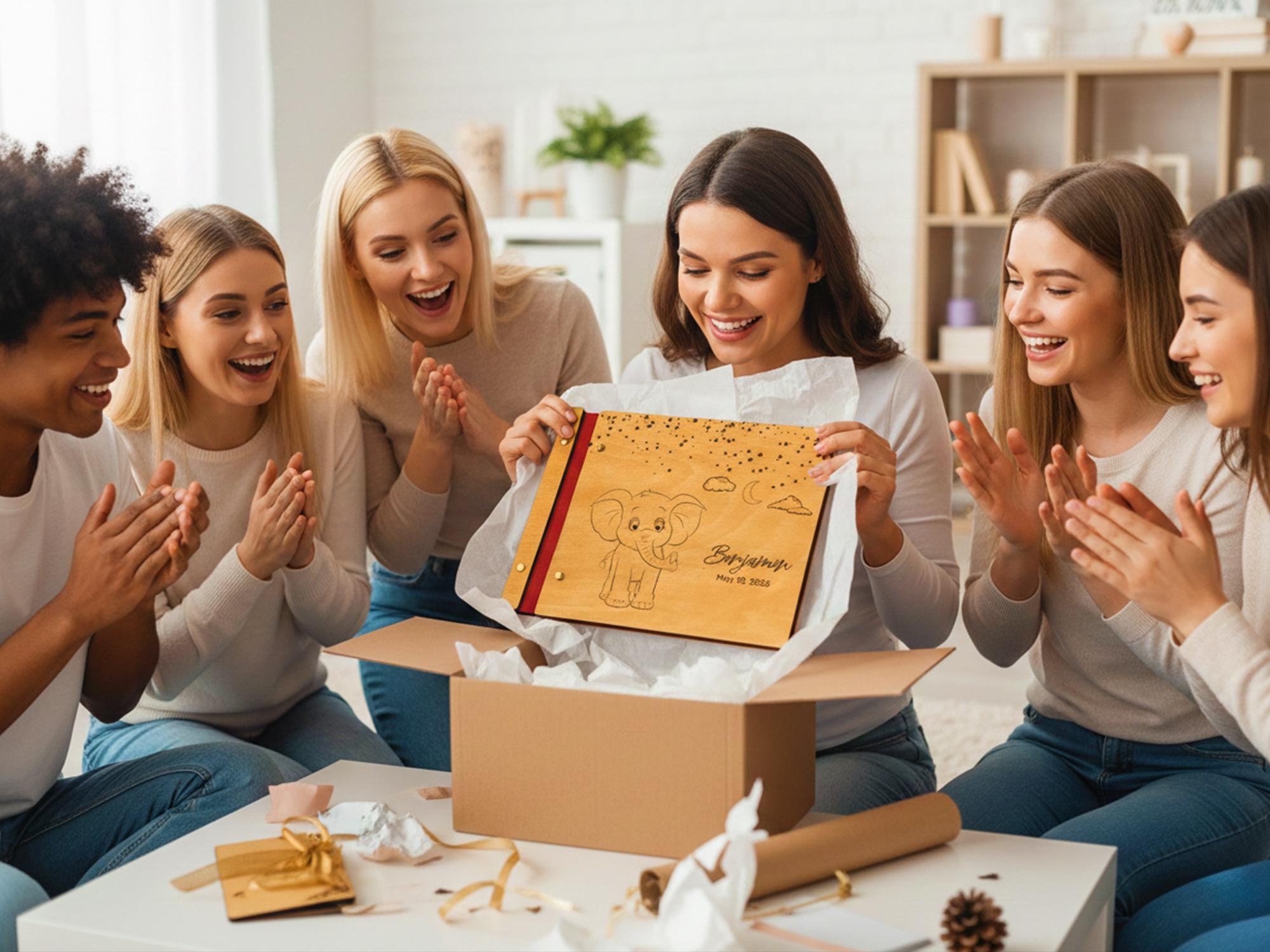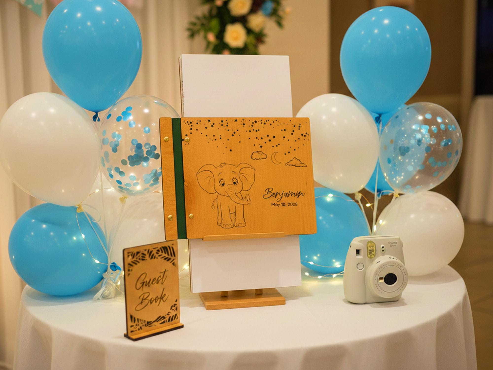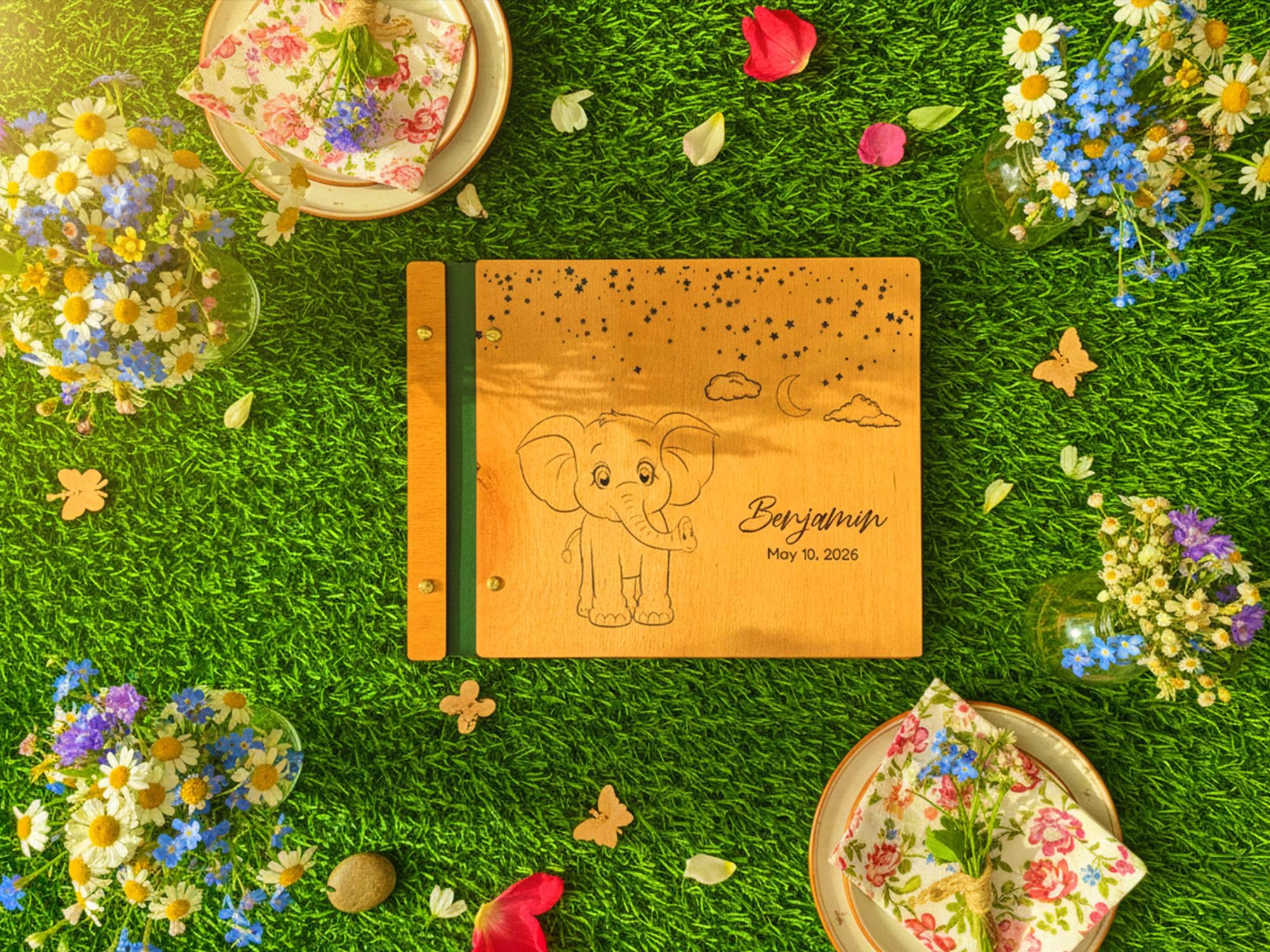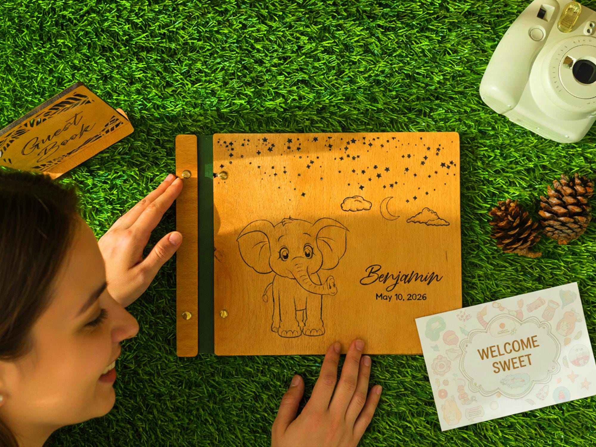 Celebrate your little one’s arrival with this handcrafted wooden baby memory book. Featuring engraved sweet elephant figure, your child’s name, and a special date, this photo album makes a timeless keepsake to treasure forever. Perfect as a baby shower gift, newborn present, or first birthday keepsake, it’s designed to hold your family’s most precious memories.