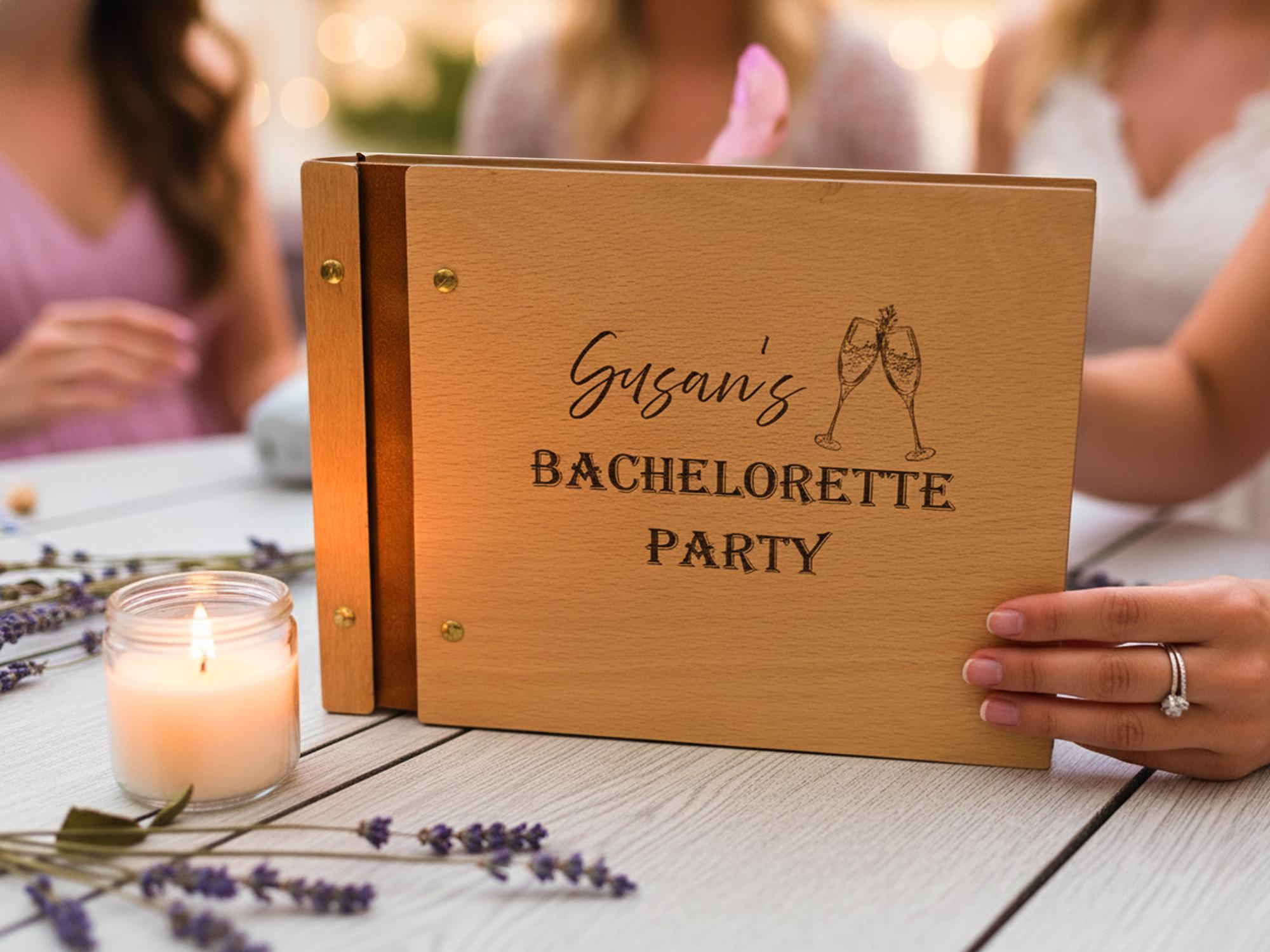 Celebrate your special day with a Personalized Bridal Shower Guest Book, designed to preserve heartfelt wishes, memories, and photos. This unique keepsake features a laser-engraved wooden cover (choo…