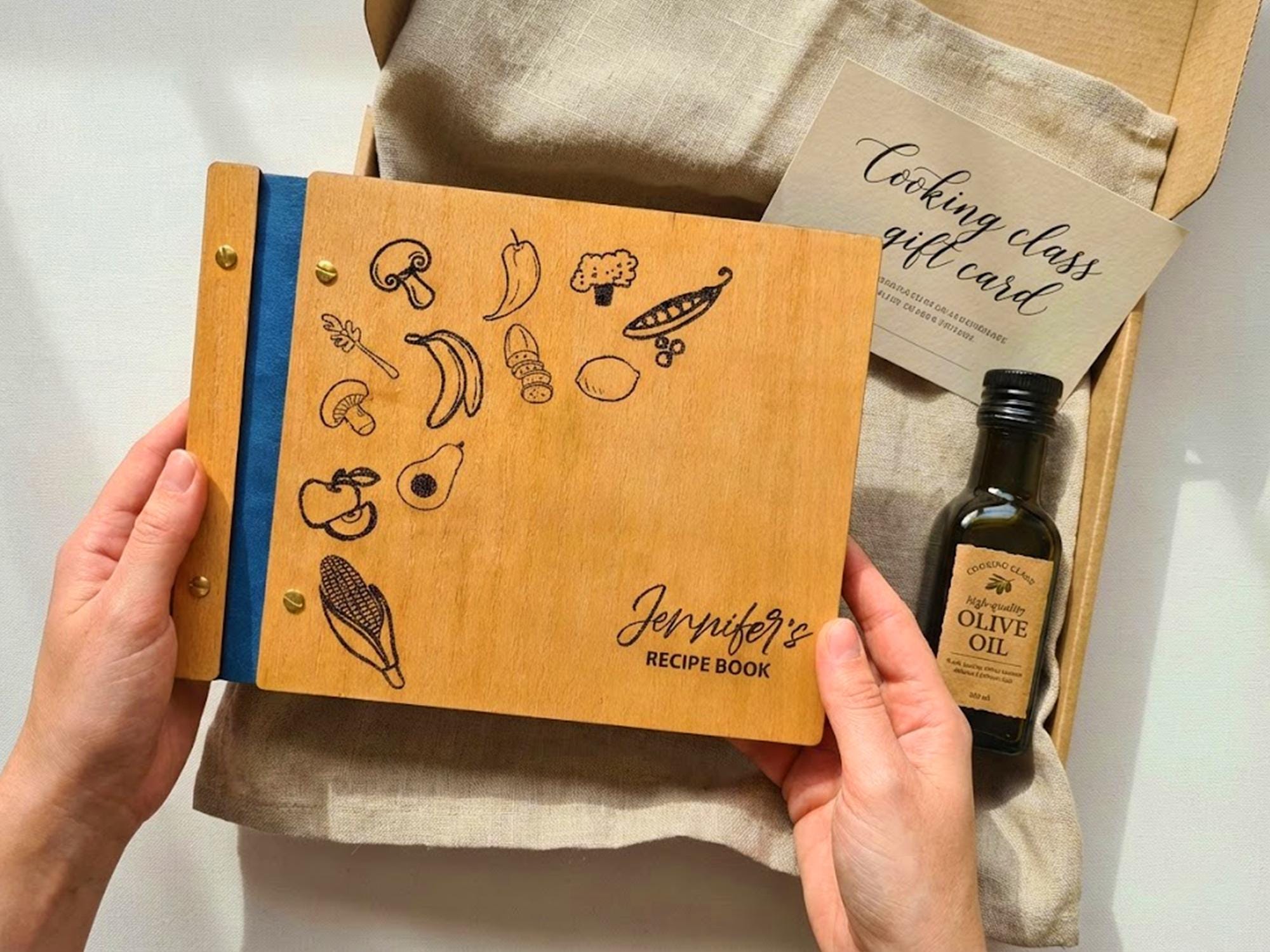We make it truly personal by engraving their name (like “Jennifer’s Recipe Book”) in a beautiful script font, turning it into a one-of-a-kind keepsake they will treasure for years.