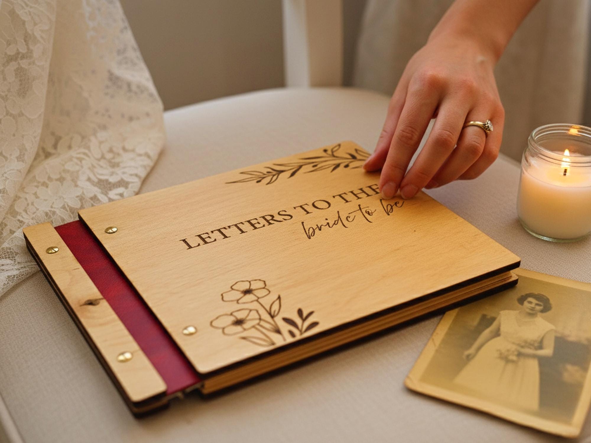 Celebrate your special day with a Personalized Bridal Shower Guest Book, designed to preserve heartfelt wishes, memories, and photos. This unique keepsake features a laser-engraved wooden cover (choo…