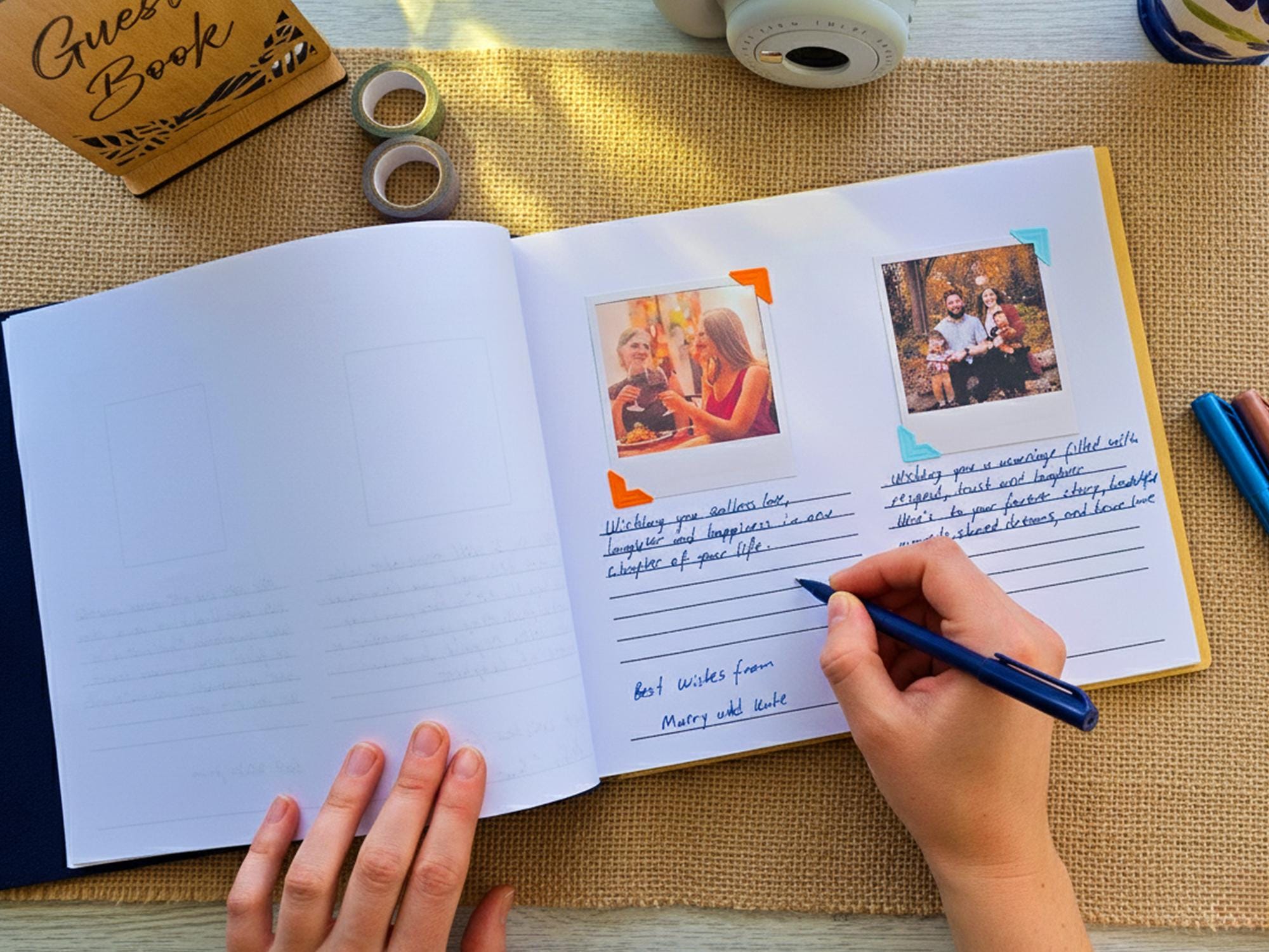 Give your celebration a personal touch with this elegant and customizable guest book – a keepsake you’ll treasure forever.