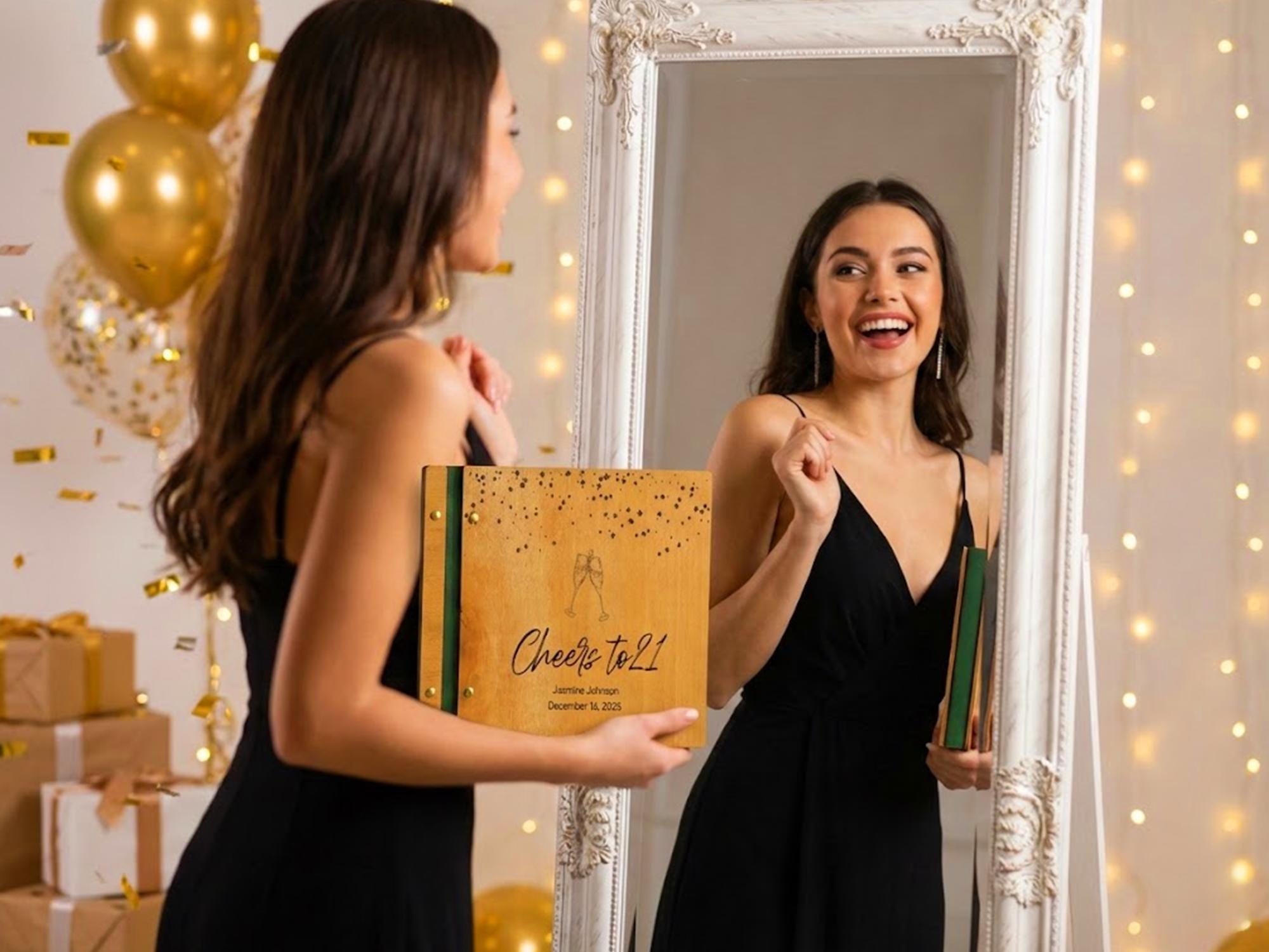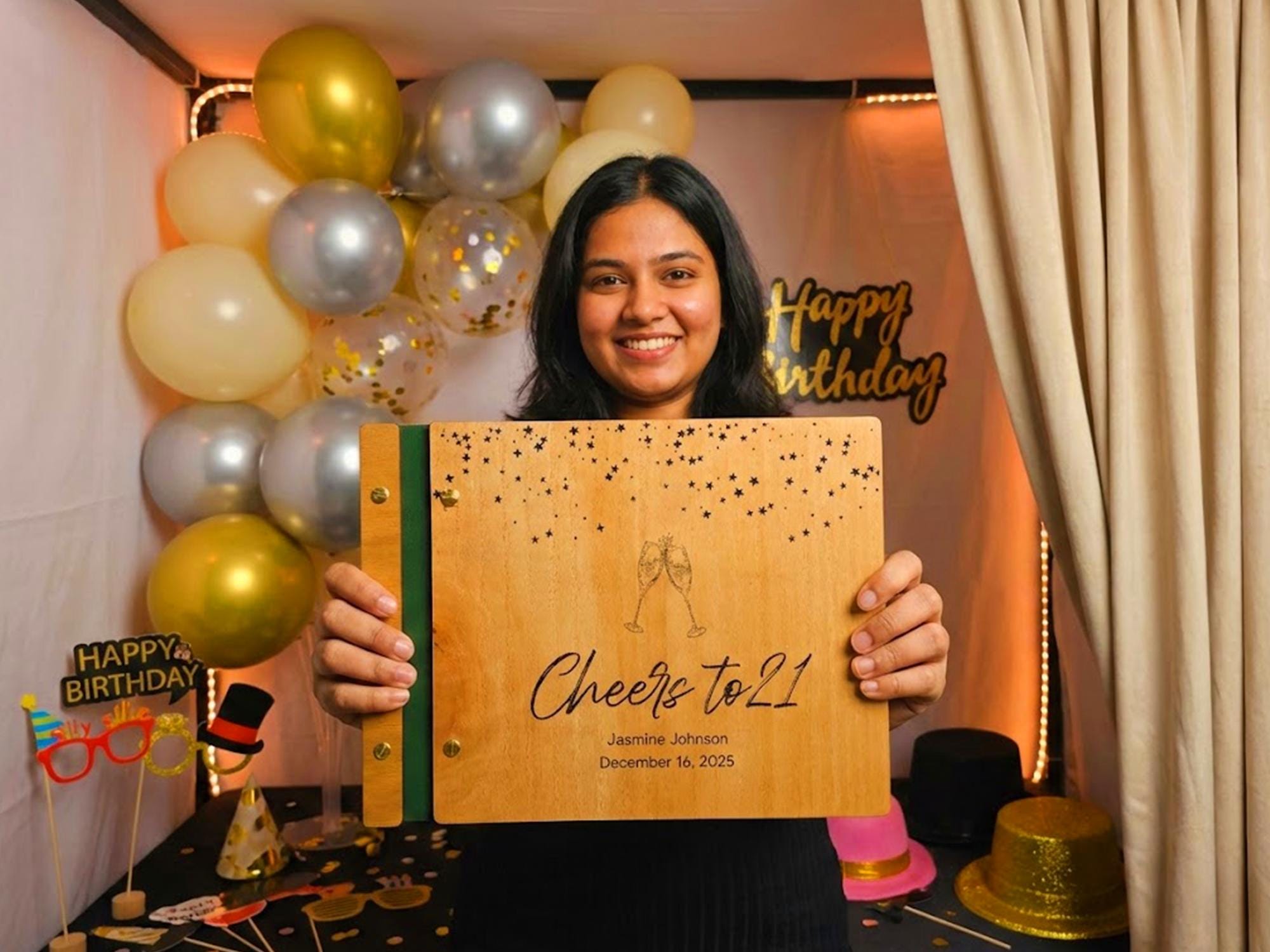 Make your 21st birthday unforgettable with our handcrafted “Cheers to 21” Personalized Wooden Guest Book. Designed to capture every smile, heartfelt message, and polaroid memory, this album is the perfect addition to your photo booth or guest entry table.