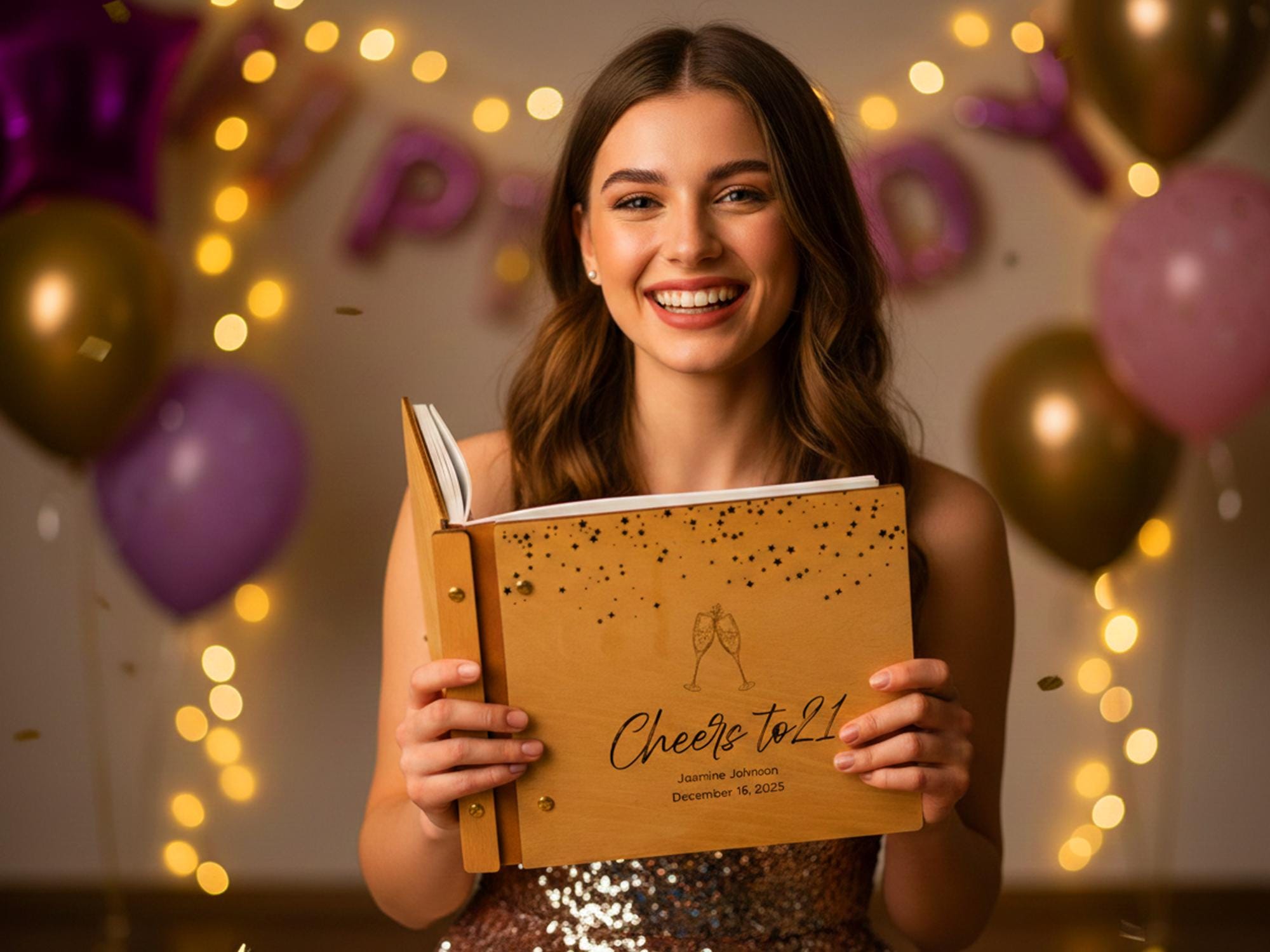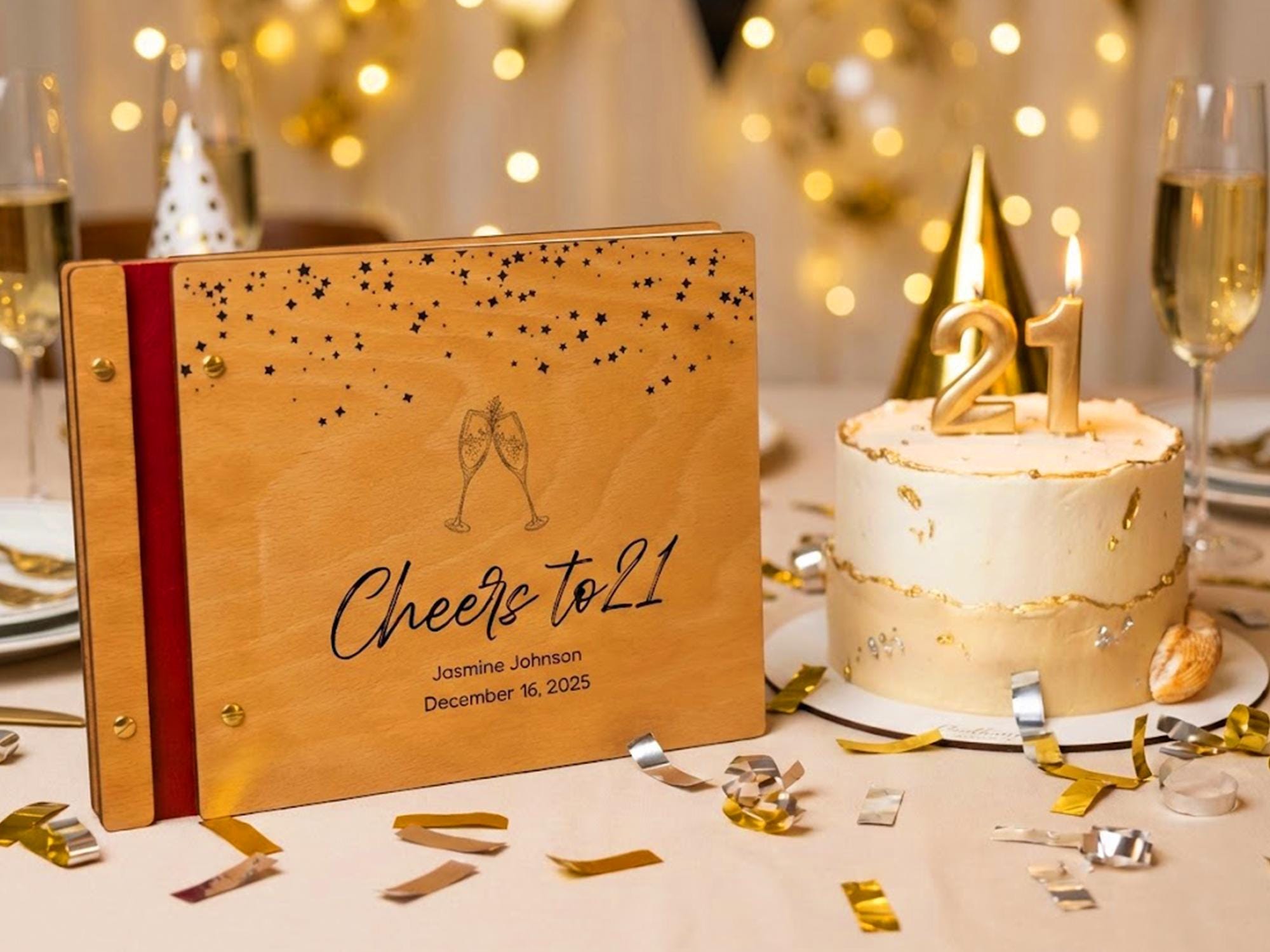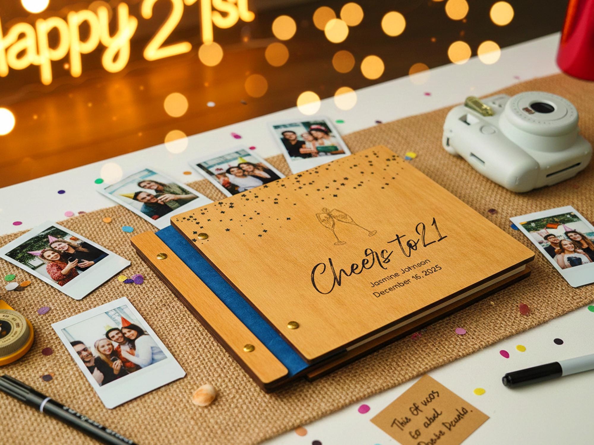 Make your 21st birthday unforgettable with our handcrafted “Cheers to 21” Personalized Wooden Guest Book. Designed to capture every smile, heartfelt message, and polaroid memory, this album is the pe…