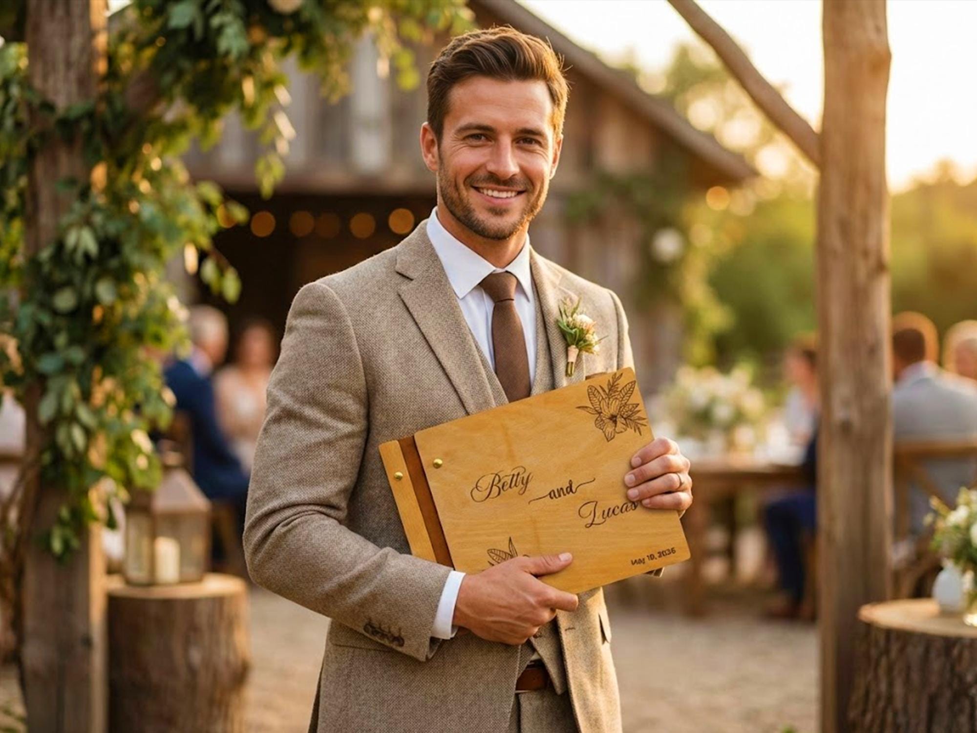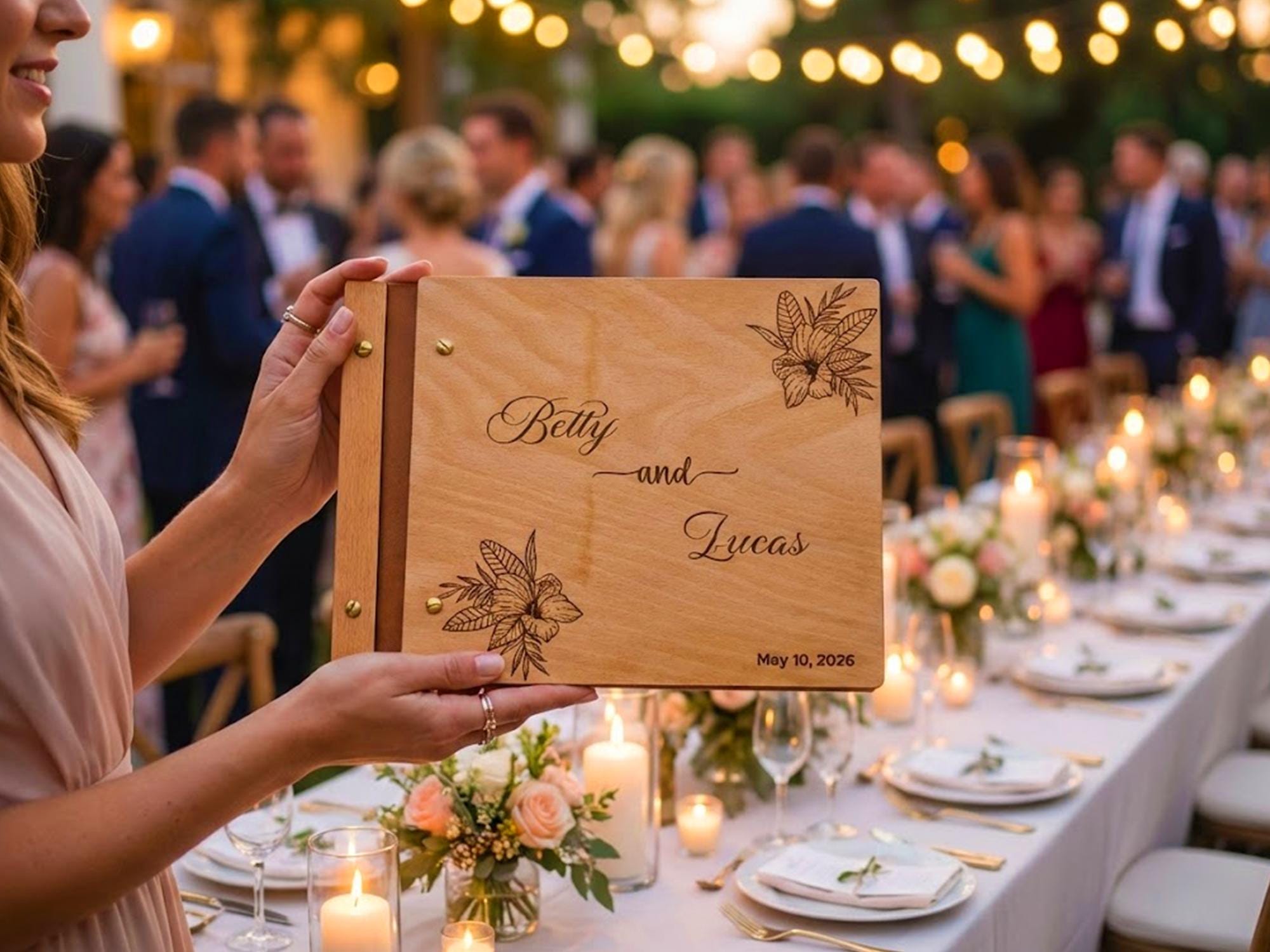 Capture the love and memories of your special day with this handcrafted wooden wedding guest book. Featuring engraved floral details and your personalized names and date, this rustic keepsake is perfect for weddings, engagements, or anniversaries. Guests can leave heartfelt messages, wishes, and memories that you’ll treasure for a lifetime.