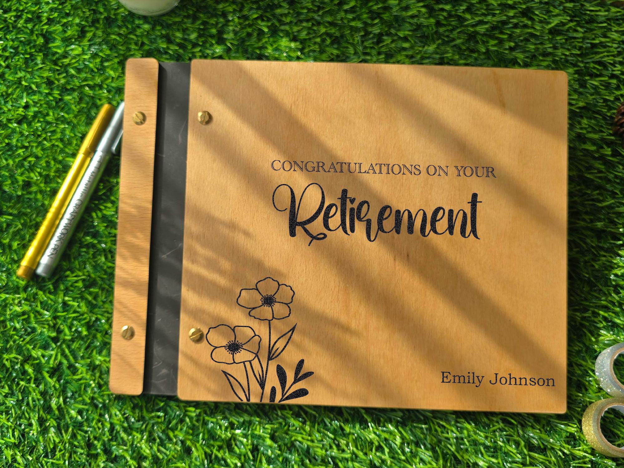 Celebrate a lifetime of achievements with a truly personal touch. This beautiful wooden guest book is the perfect way to capture heartfelt messages and cherished photos from a retirement party, creat…